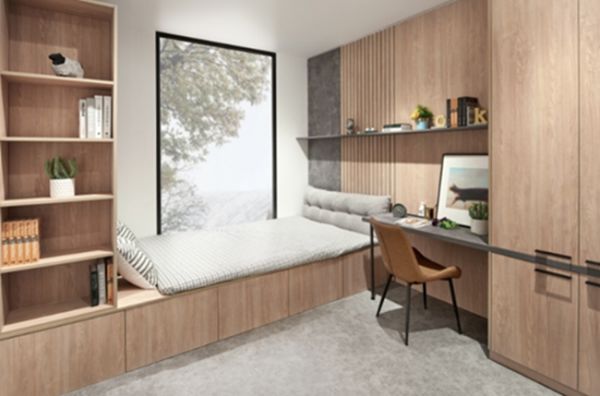关于空间优化,是一个仁者见仁智者见智的问题,在日常生活中,很多人都曾有过这样的经历,发现同住上下楼的邻居,家里户型一样,但给人的空间感却大不相同。城市住宅空间寸土寸金,每一平米都为这个家庭努力发挥应有的效用,所以柏厨家居深入发掘每一空间的功能潜力,以人的活动为中心,细致优化生活体验。比如茶卡家居的卧室空间,除了一张温暖的大床,还配置了一个收纳便捷的电视柜,一个为女主人必不可少的梳妆台,以及一排大肚量的顶天衣柜,满足所有对家的想象。