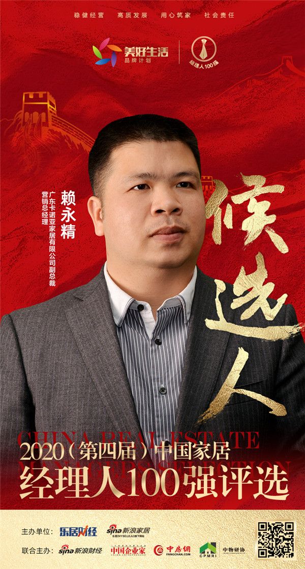 新浪家居讯 由乐居财经、新浪家居主办,新浪财经、中国企业家、中房网、中物研协联合主办的“行稳致远——2020(第四届)中国家居经理人评选”网络报名正式启动。10月30日,靓家居常务副总裁葛烨明获提名,成为“2020中国家居经理人100强”候选人。