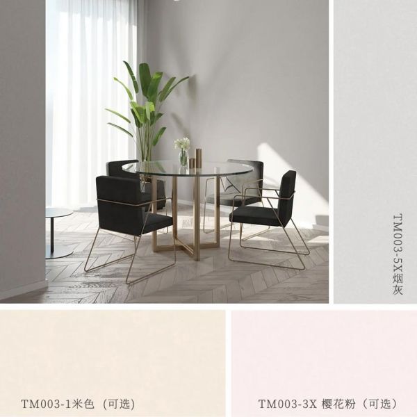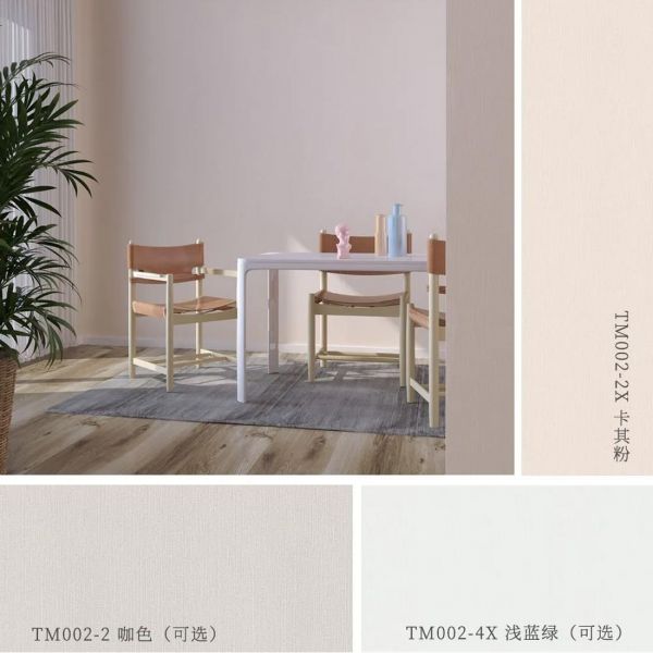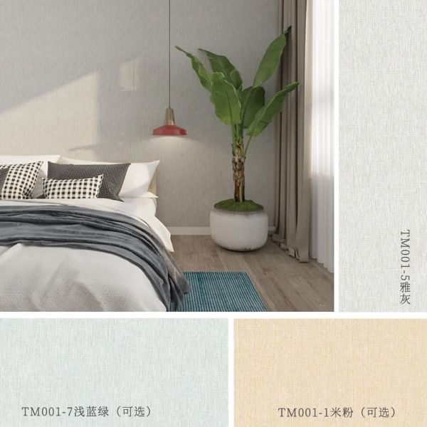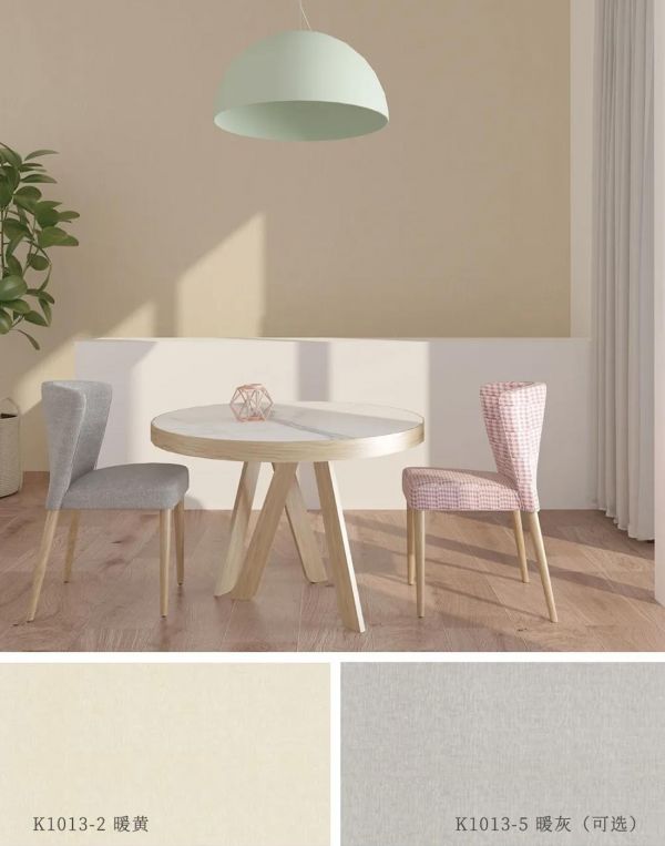 JCC天洋墙布现代简约系列,以简约、轻时尚为风格定位,运用低饱和度的莫兰迪色系,色彩柔和雅致,营造出让人心神安宁的恬静氛围,简约而不失高级,采用高精密提花工艺,纹理精致细腻,触感温柔,凸显室内空间的精致和静谧,摒弃浮华,回归舒适简约之美。