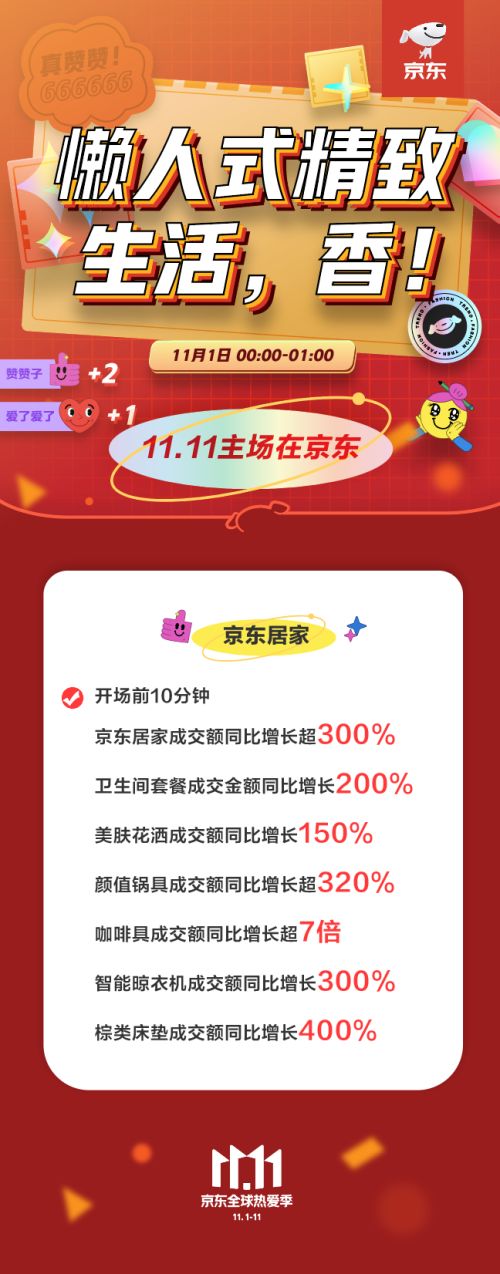 今年的特殊环境让中国人对于“家”有了更深刻的理解,也对线上装修、配置家具和添置各种家居日用品有了更迫切的消费需求。11月1日,2020京东11.11全球热爱季火爆开场前10分钟,京东居家成交额同比增长超300%,成为国民居家消费升级主场。