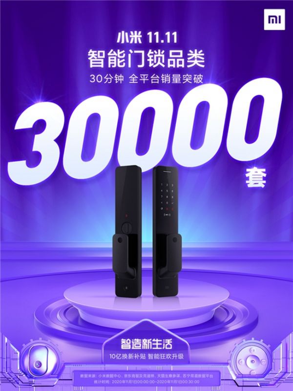 双十一战报:小米智能门锁,仅30分钟售出30000台
