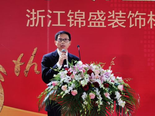 中国建筑装饰装修材料协会专职副会长王保祥先生在致辞中表达了对锦盛墙饰的为行业发展探路的高度支持。他指出,中国房地产业的装修装饰领域是信息智能技术应用的广阔领域,民用建筑的建造和使用过程是智能终端应用的重要场所。多年来,中国的民用建筑,沿着三条途径向前发展,一是建筑材料本身的进步,二是建筑方式的变革与发展,三是建筑产品,生产组织和管理方式的进步;这是两个行业融合发展以及协调推进的有机结果。王会长希望浙江锦盛在促进房地产业与信息产业融合的过程当中,确实起到应有的作用,统筹谋划,统筹推进,协调共赢,融合时代、创新发展,中国建筑装饰装修协会愿为优秀企业在科技创新,产业升级,绿色环保方面保驾护航。