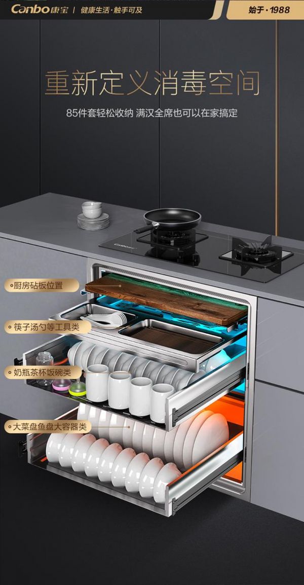 康宝是消毒柜的发明者,是消毒柜行业龙头企业,消毒柜国家标准和行业标准的制定者之一,康宝被誉为为“世界消毒柜王国”,成为中国消毒柜行业标志性品牌。康宝集臭氧、紫外线、高温等多功能于一体的消毒柜,容量从15升至1200升不等,立式、嵌入式、台式,壁挂式,红色、金色、银色、灰色……康宝应有尽有,可满足你的需求。值得一提的是,康宝电器新品智能AI消毒柜EN732将在11月1日钜惠首发上市。