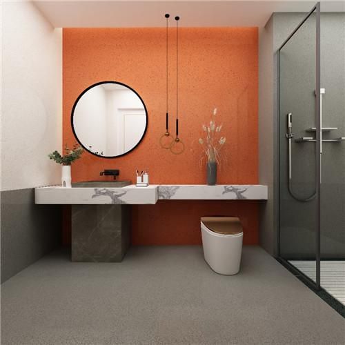您家的洗手间装潢有我家漂亮吗?选用人造石桑巴红系列产品,鲜艳热烈的色彩,均匀细致的花纹,一如桑巴舞般火热动人。桑巴红搭配洗手台那流水般的云状纹路,加上气质高贵的座便器,整个空间高端、大气、上档次,一看就是富贵人家的洗手间。