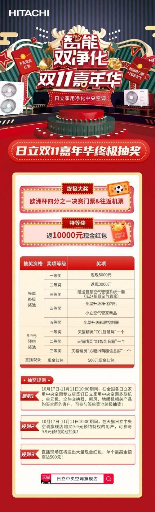 双11嘉年华,锁定日立中央空调天猫&京东旗舰店,生态生活、超值福利带回家!