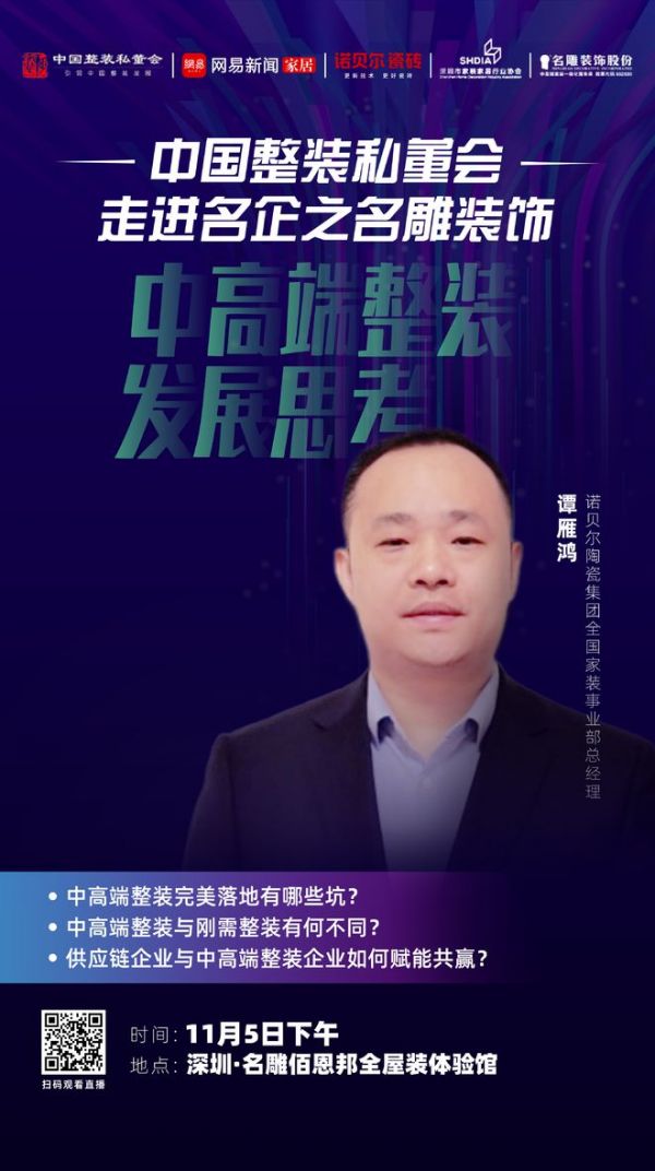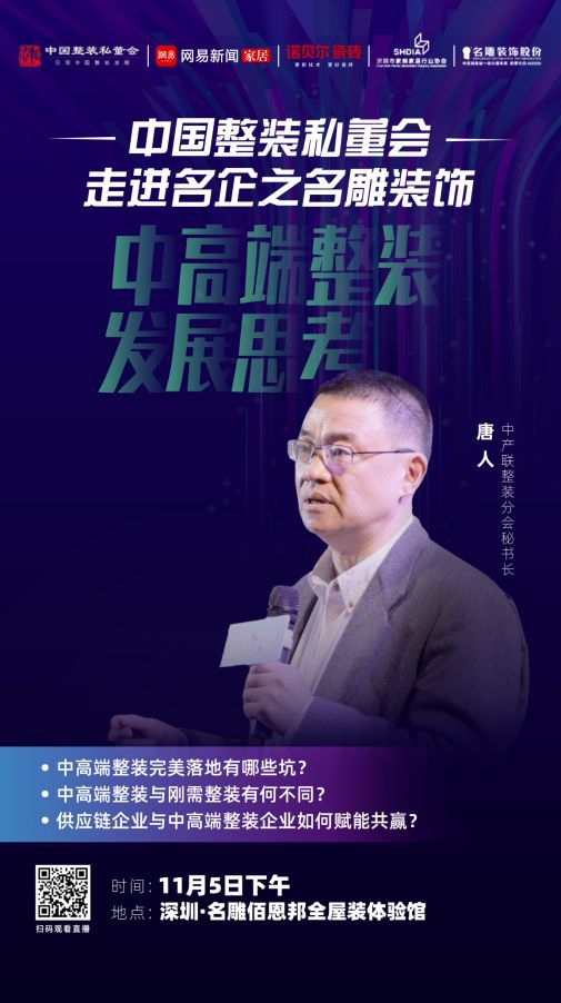 整装大趋势下,中高端装企、供应链企业会面临哪些机遇和挑战?供应链企业如何赋能中高端企业,实现双方更好的合作共赢?为厘清这些疑问,11月5日,整装私董会走进名雕装饰,汇聚行业智囊团一起探路中高端整装!