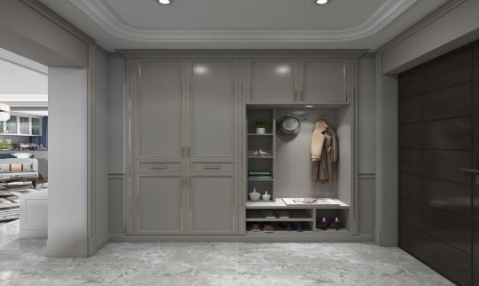 据悉,千年舟·全屋易装推出的《艾菲尔Ⅱ系列》设计,符合年轻消费者对于美好生活的想象,受到了欢迎。在整体设计上,入户处玄关的开放空间设计了多层储物格,规整收纳各种摆件。单侧掏空设计精巧的留出换鞋的座位,还可以悬挂衣物和包包,大面积的掩门设计,创造了大容量收纳空间,也显得大气整洁。