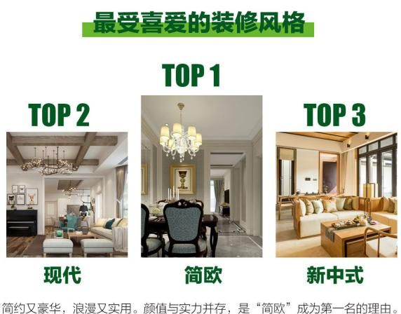 随着生活节奏的日益加快,新一代消费者在装修选择上更倾向于省心、省力、省钱,更多的消费者会选择环保装修套餐。百安居从产品、服务、管理及售后等各个方面确保环保装修,确保消费者净享环保家装。其中,最受广大消费者欢迎的是899元/平米精致装修套餐。百安居通过声、光、水、气、湿五个方面为消费者检测全屋状态,科学计算,从源头把控甲醛、苯、TVOC含量,使用环保材料,采用9大环保工艺、36项环保管控,3次专业环保检测出具专业检测报告,力求家装安心舒适。899元/平米精致环保装修套餐满足家装五大空间配置需求,超高性价比满足家装需求,缔造超乎想象的梦想家居。另外,最受消费者喜爱的装修风格是“简欧”风格,其简约又豪华,浪漫又实用的特点助力它登上第一名的宝座!