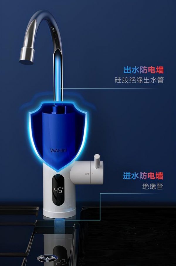 水电相关,安全性是用户最关心的,尤其是使用频繁的水龙头更是如此。针对市场上电热水龙头普遍存在的问题,华凌厨卫着重改进防电和防火设计,提升产品安全性。
