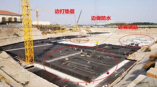 ARF地下智防水系统应用在建筑底板,是以金钢甲预铺反粘防水系统为主,尤以金钢甲高分子预铺防水卷材为最。一方面,该卷材在施工应用中弥补了当前预铺类防水卷材防护能力不足的缺陷,自如应对后续施工的种种考验,表面防护能力和整体满粘效果都达到了当前技术顶级水平。另一方面该卷材免打保护层,与预铺发展技术的天然成本优势,相得益彰。边打垫层、边做防水、边绑钢筋,同步进行,真正实现防水0工期,切实做到省时、省工、省钱,竞争优势不言而喻。