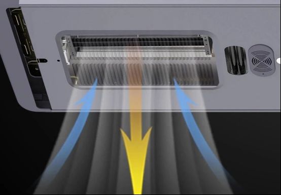 Q5 Max的出风系统做了新的设计和升级,标配了第四代加大风机,风机与导风格栅做了结合设计,风机偏置一侧,使风从一个口入,另一个口出, 通过导风格栅使空气循环流动,让晾衣机下方的空间形成一个环绕的风场。