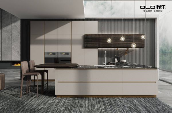 洛亚系列以“优雅”气质为核心,构建宁静而隽永的生活力场。柔和微弧型边型设计,前卫字母元素融入,多元化搭配组合。其独特的“洛亚摩咖”色波浪背景板,凹凸肌理交错其间,为优雅的厨房空间增添错落与层次。表面纵向纹理与颗粒质感并存,彰显别具一格的原创设计感,共同诠释刚柔并济的优雅生活。