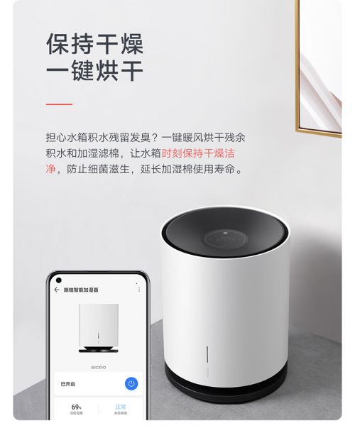 而到了潮湿的雨季或者碰上临时出差,以及一些用不到荣耀施铂加湿器的时间段里,荣耀加湿器还配备了一键蒸发水箱余水的功能,用户只需轻轻点击,荣耀施铂加湿器内部便可放出暖风,烘干水箱内的残余水量,并保持水箱内的干燥性,确保用户在下次使用时水箱内的清洁程度。