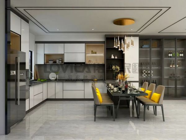 宽敞时尚的厨房有着重要地位,餐边柜的视觉冲击,使空间富有层次,现代感十足的设计、简洁流畅的线条,给人以视觉上的完美享受。