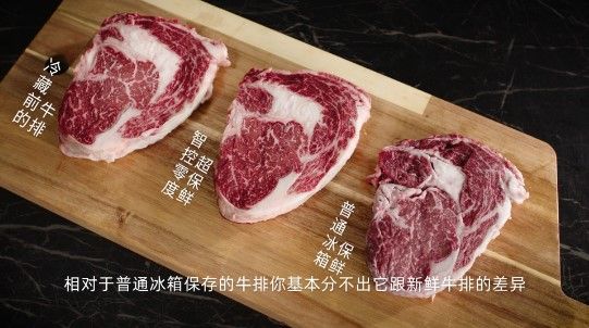 在储存和保鲜肉类时,这种“黑科技”的保鲜效果体现得淋漓尽致。为了测试鲜见S550的保鲜实力,我们将一块新鲜的牛肉放入零度舱内,一周后取出与新鲜肉对比,可以发现,不管是色泽、柔韧度,还是肉质口感,这块经过一周保存的牛肉都与新鲜牛肉基本无差,着实令人惊艳。