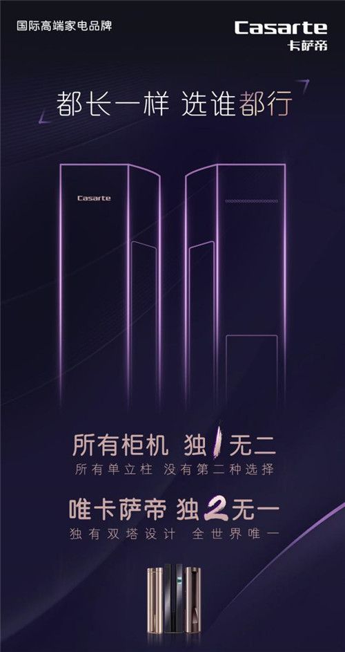 破局同质化瓶颈,卡萨帝发明新品类双塔空调。早在2016年,卡萨帝就致力于双塔空调的研发;现在,卡萨帝独创双塔空调已经成为空调行业的新品类。从外观上看,卡萨帝打破了单立柱瓶颈,创新双塔造型犹如微型的双塔建筑,更具高端视觉美感。从体验上看,双塔造型并非虚有其表,而是承接双塔软风的重要载体。