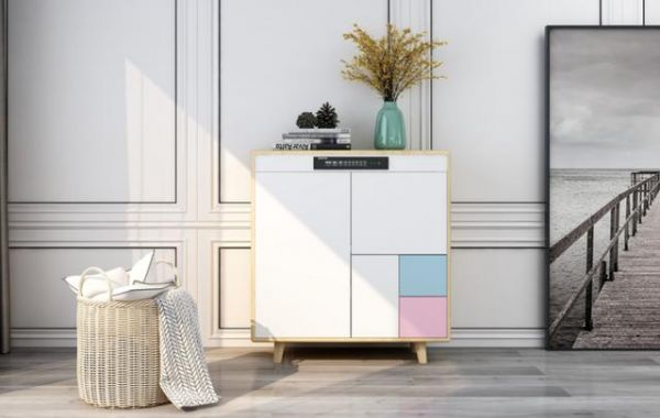 以新品智能鞋柜为例,融入3D循环风、等离子技术,产品兼具烘干除湿、抑菌、除臭等功能,外观方面,白色、蓝色、粉色相搭配,更添时尚活泼,工艺方面,门板、抽面安装反弹装置,更加符合人体力学原理,材质方面,以烤漆门搭配实木边条,兼具时尚与质感。