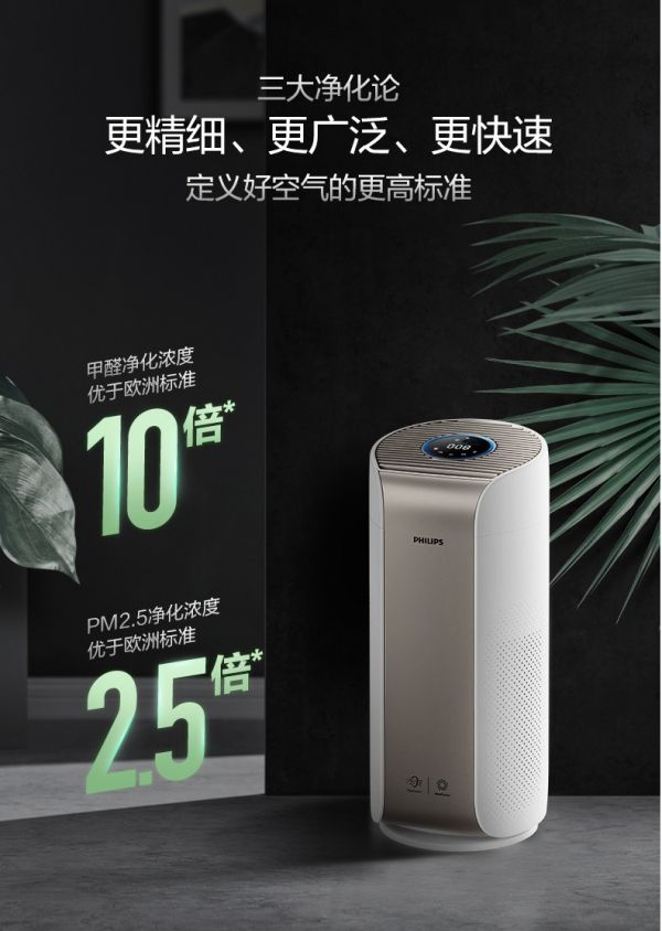 随着健康生活意识的提升,人们不仅仅满足于空气质量的中等或良好,对室内空气的要求越来越高。欧洲空气质量领先全球,而根据欧洲标准,室内甲醛浓度最高允许在0.01mg/m³。可实际上据研究发现,在室内甲醛浓度达到0.06mg/m³时,就会引起儿童的轻微气喘。飞利浦空气净化器AC3058打造更精细,更广泛,更快速度的净化性能,实现甲醛净化浓度10倍优于欧洲标准,PM2.5净化浓度达到2.5倍优于欧洲标准[1]。为居家空间带来健康安心的环境,将室内空气质量推向新的高度,实现天然氧吧般的呼吸体验。