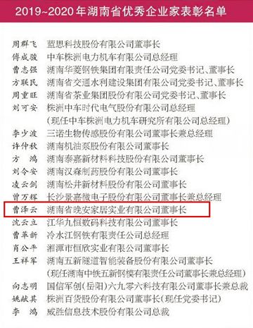 行业典范|晚安家居董事长荣膺“2019-2020年湖南省优秀企业家”称号