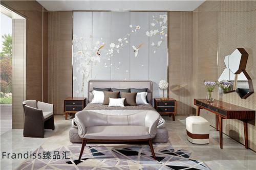 Frandiss FB107风格雅致精炼,色彩明丽素雅,冷静的外表下透露浪漫温情。进口牛皮、金属质感凸显家具生活的时尚感、层次感,彰显精英人士格调与希翼,让居住日常回归生活美学,轻享美好生活。