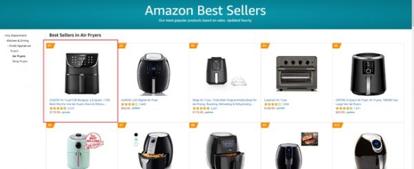 图:亚马逊空气炸锅Best Sellers榜单