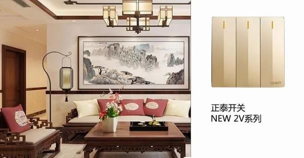 新中式风格装修很适合大板开关,大板开关简约大气,而且方方正正,能融入新中式对称及方圆的平衡。正泰开关NEW 2V系列金色开关,采用传统 “折纸艺术”概念设计,将中国风尚融合现代美学,灵动地勾勒出强烈的空间立体感。金色面板,更衬托出新中式优雅古典的气质和风度。