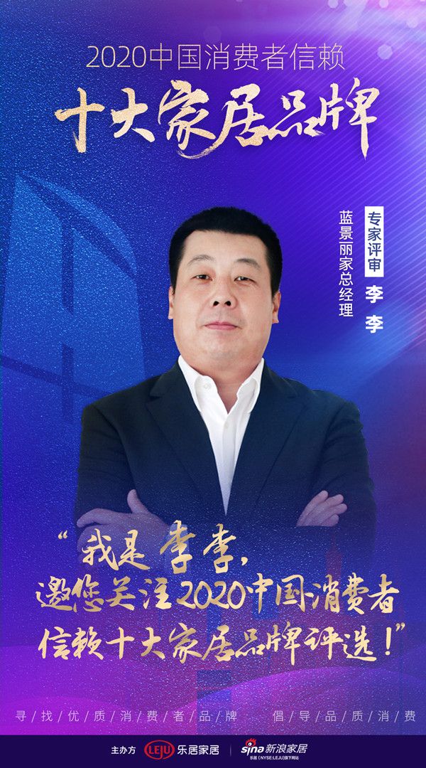 新浪家居讯 蓝景丽家总经理李李先生受邀担任“2020中国消费者信赖十大家居品牌”评选专家评审。