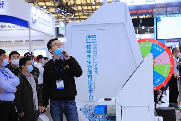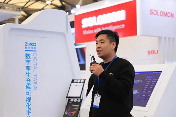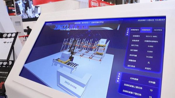“数字孪生+”仓库可视化平台将展会现场展示的所有产品运作情况汇集一体,通过操纵鼠标,观众能够实时体验现实与虚拟交互的数字孪生的魅力,别具一格的创意平台吸引了众多观众驻足拍摄。