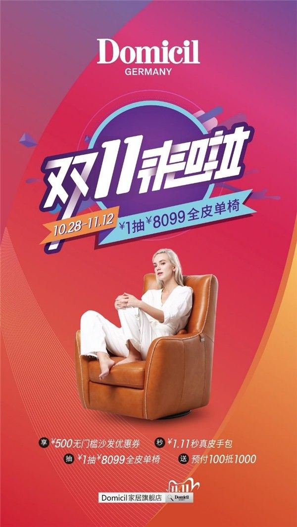 当梦享生活邂逅双十一惊喜优惠,即刻焕新家吧!10月28日-11月12日双十一活动期间,500元无门槛沙发优惠券、1.11元秒真皮手包、1元抽8099元全皮单椅、预付100抵1000、双十一特供必抢爆款五大优惠等您来参与!