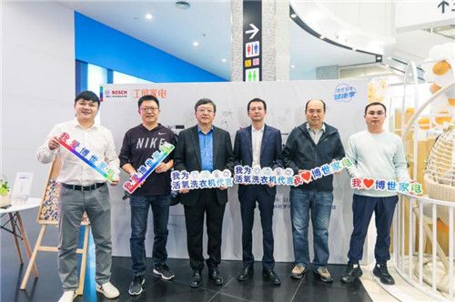 随后工贸家电董事长李丰、工贸家电采购中心副总经理舒志伟、博西家用电器(中国)有限公司华中大区总经理严共波、博西家用电器(中国)有限公司华中大区家电渠道总监庞路路共同携手,开启了博世活氧健康洗烘中心新品上市的启动仪式。据了解,此次推出的活氧洗衣机,是目前市面上首款将活氧杀菌技术应用在洗衣机中的家电产品,不仅开创了行业先例,更是引领了洗衣除菌的新方向。