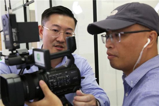 ▲危五祥与圣戈班集团采购总裁布里斯先生沟通产品细节