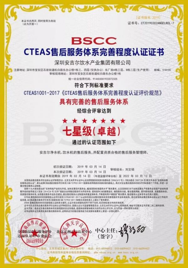 服务方面,安吉尔制定严格标准,通过专业、细致、主动的差异化服务给消费者带来超出预期的体验,成为净水行业唯一一家获得国家颁发的七星级服务认证的品牌。