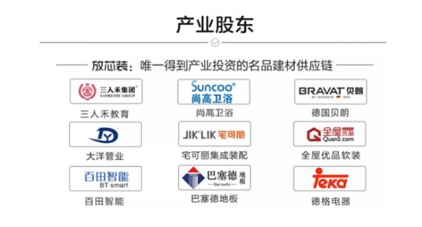放芯装于2017底获得了700万的政府产业引导资金,并陆续得到了贝朗卫浴、宅可丽集成装配、尚高卫浴、大洋管业、全屋优品、百田智能、三人禾集团、巴塞德地板、德格电器等产业资本数千万战略投资,是2018年度中国家居产业整装供应链影响力品牌、2018年度值得信赖的整装供应链品牌,2019年度守诚信重契约企业!