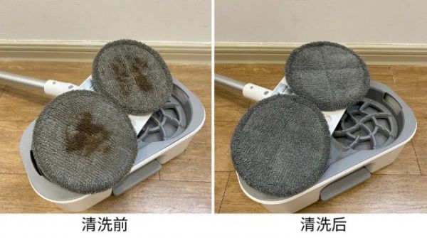 鲨客C3 mini还配置两种拖布,白色为干/湿拖布,由超细纤维和尼龙材质组成,干拖能吸附灰尘和毛发,湿拖则强力去污;灰色是打蜡布,机身水箱可内置打蜡液,配合使用。