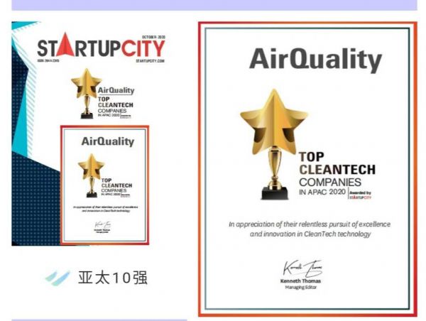 近日,爱优特空气技术(AirQuality)凭借在空气净化领域的高新技术和对疫情防控的卓越贡献成功入选2020亚太地区清洁技术公司10强榜单。该榜单为StartUp City创业城市(美国各行业决策者发布趋势、新闻、观点、消息的独立平台)权威发布,APAC 10强均为可持续创新企业,被公认为将会在未来五到十年内对市场产生重大影响,并已有卓越发展及成就,滴滴出行、小鹏汽车等独角兽企业也曾入选。