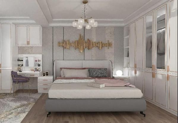 大多数人喜欢单独购置梳妆台,这样很容易与室内的风格不搭,而且还要腾出单独的地方安置。而如果将梳妆台和衣柜连接在一起设计,穿衣打扮的动线会更短,还能让室内的整体风格统一。