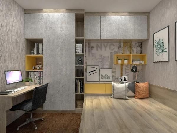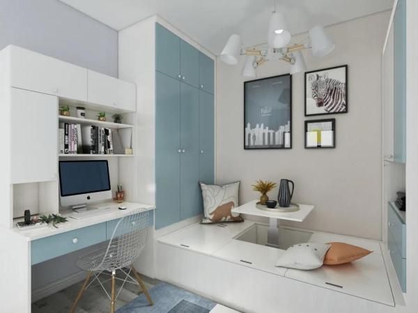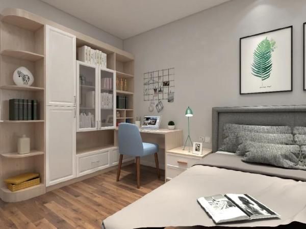 有的家庭户型比较小,但是又想在家里设置一个工作区域怎么办呢?其实可以在卧室里做一个衣柜+书桌柜的组合,把每一寸空间利用到极致,工作或学习特别累的时候,可以立马躺在床上休息,非常经济实用。