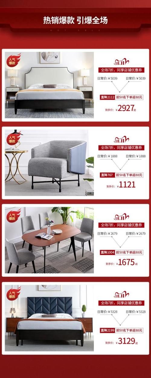 活动当天,只要在盈家宅品天猫店中购买家具,即可享受全系产品7折优惠。除了全场7折的巨大优惠力度之外,盈家宅品还推出了店铺叠加优惠券,消费者在享受7这优惠的同时,还可以使用优惠券进行减免结算,券后叠加优惠低于6.3折。