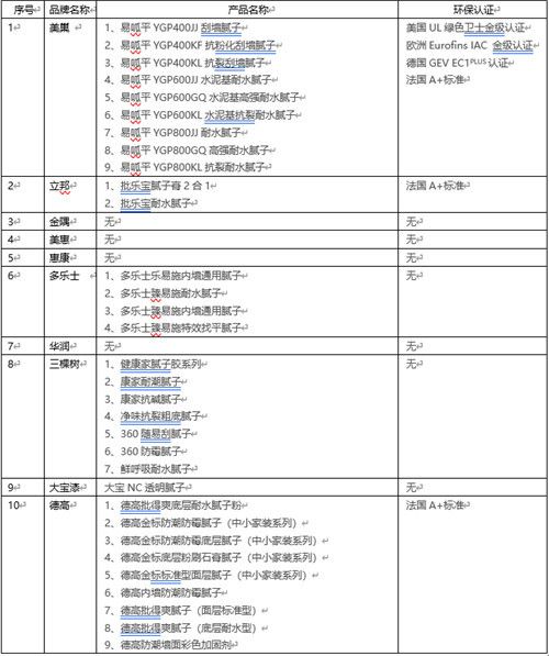 为了让大家更加准确地了解室内装饰辅料的环保问题,笔者整理了目前市场中室内装饰辅料常见品牌,并将它们的环保认证做了逐一的对比,以供广大消费者参考。
