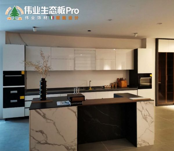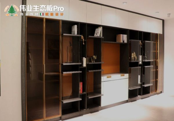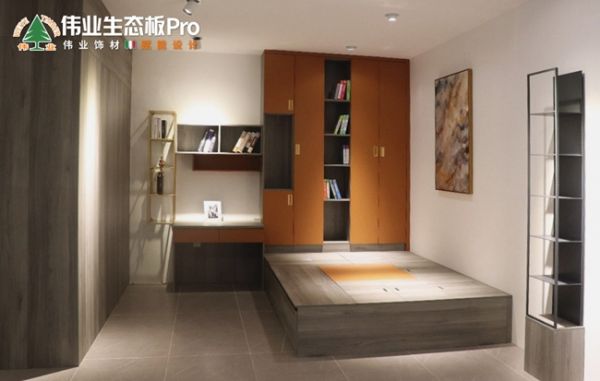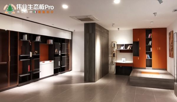 精致的展厅,功能区域划分明显,囊括了伟业品牌的所有产品体系,百款花色板材与定制衣柜、橱柜、电视柜、护墙板、衣帽间、榻榻米、柜门等定制家居产品交相辉映,淋漓尽致展示了伟业牌板材的优越品质与时尚品味,并且通过板材在家居空间展示为经销商伙伴提供升级参考;全方位展现“全屋定制赋能方案”提供一站式板材服务;为定制家居家具企业及定制店面赋能。