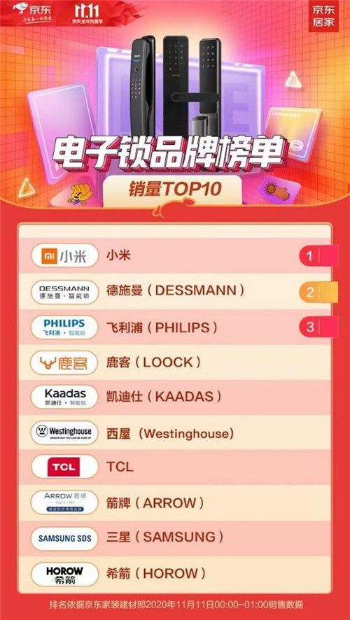 网址:京东11.11电子锁品牌榜小米、德施曼、飞利浦位列三甲 https://c.jiaju82.com/news-view-id-729484.html