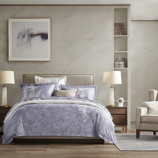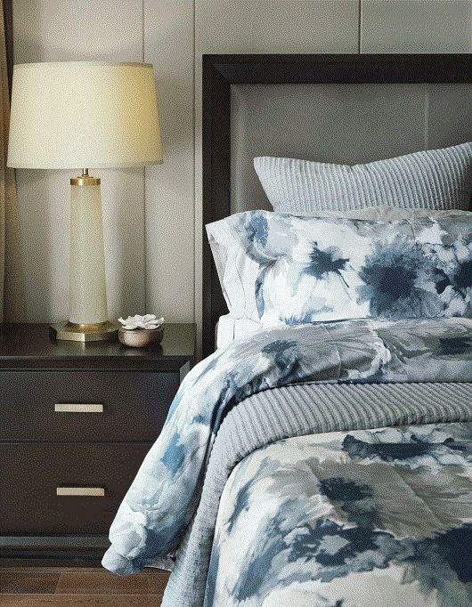 以葡萄牙画家笔下的"春日繁花"为灵感,Mercy 床品系列用雅致的灰蓝色调与水彩风格平衡了花卉簇开的喧闹感,留一份从容心境,在初冬亦优雅绽放。
