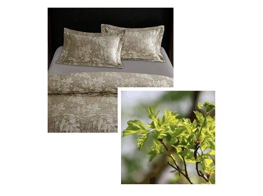 檕[jì]梅树叶的寓意是“希望”,Lulang 床品系列的设计灵感便源于此。叶片灵动舒展,错落平铺之间,似于金色曦阳之下,在典雅居室中复苏,展现一派盎然生机。