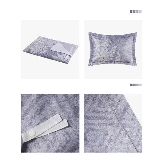 被套内侧四角与三边居中位置设有罗纹织带加四合扣,帮助固定被芯,方便实用。在四围工艺上采用配色缎纹针设计,低调精致的细节装饰,凸显品质。
