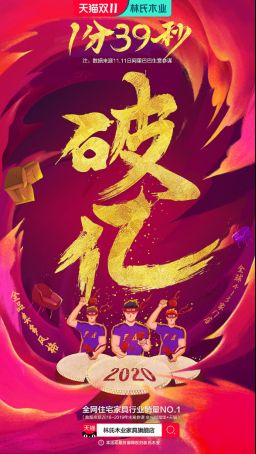 巅峰狂欢,再展实力!11月11日零点,双11第二波正式销售开场1分39秒,林氏木业全渠道成交额破亿,!9分5秒破2亿,成为天猫首个破亿的住宅家具行业品牌 。