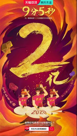 1分钟39秒破亿!林氏木业成天猫双11首个破亿的住宅家具行业品牌