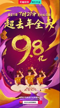 林氏木业双11开售7小时21分累计成交额破9.8亿,超去年全天业绩!