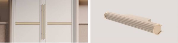 细节设计上,设计师大胆采用罗马柱造型拉手,外观设计源于希腊古典建筑三种柱式之一——纤细优雅的“爱奥尼柱式(Ionic Order)”。精致考究的经典造型设计,沉淀出古典庄重的氛围。罗马柱造型拉手提供长短两种规格,充分适应不同家居定制需求。