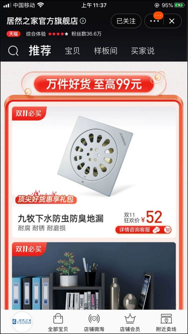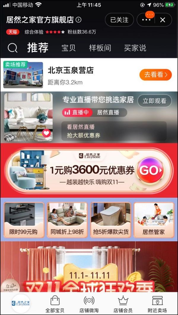 据天猫家装事业部新零售总经理冬一透露,此次“双11”活动期间,阿里巴巴预计将汇聚500万UV的“本地化”流量,整合天猫平台的行业会场、搜索引擎、营销广告等流量矩阵资源,同时,强化居然之家品牌在资源位的透出。“这也是因为阿里看中了居然之家商户的服务力高于其他商户的服务力,希望增加居然之家品牌与年轻人互动的机会。”