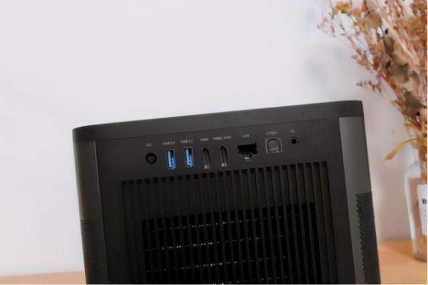 当贝投影F3的主要接口在机身背部,从左到右依次为电源接口、USB3.0×2、HDMI、HDMI(ARC)、LAN网口、S/PDIF以及3.5mm耳机孔。接口丰富意味着更多样的玩法和拓展,比如我甚至可以用这个投影来接游戏机进行大屏互动体验。
